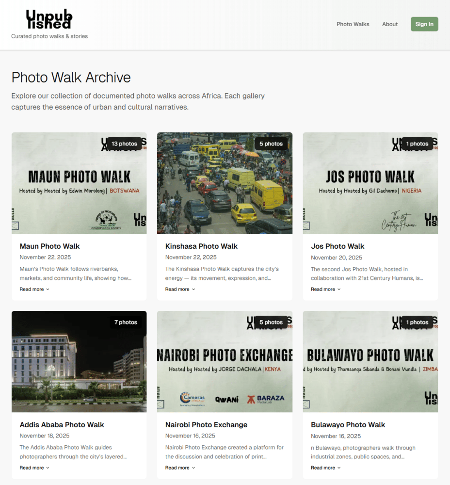 Were you part of an Unpublished Africa Photo Walk? We’d love to see what you captured! Upload your photos to the Photo Walk Archive and help us document the journey.